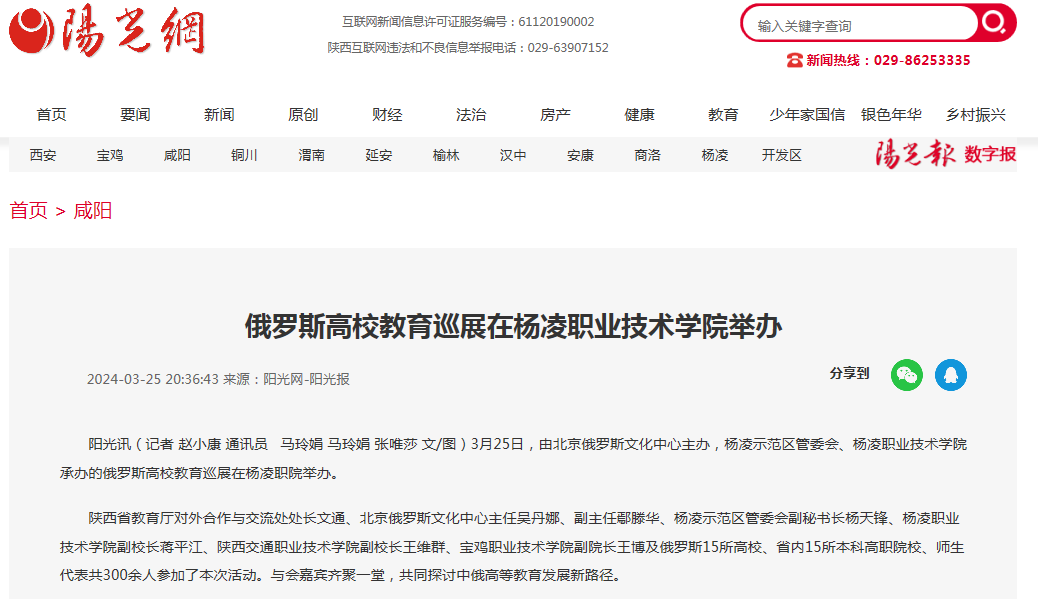 3月25日,由北京俄罗斯文化中心主办,杨凌示范区管委会、304am永利承办的俄罗斯高校教育巡展在杨凌职院举办。