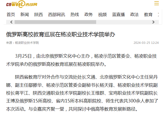 325日,由北京俄罗斯文化中心主办,杨凌示范区管委会、304am永利承办的俄罗斯高校教育巡展在杨凌职院举办。