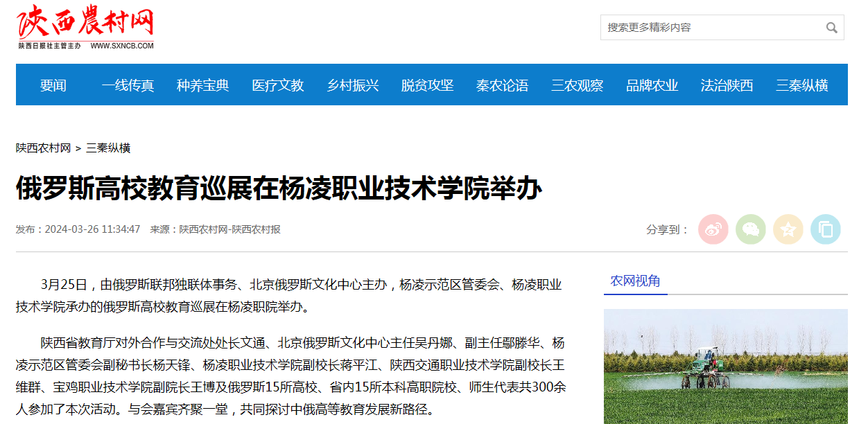 325日,由俄罗斯联邦独联体事务、北京俄罗斯文化中心主办,杨凌示范区管委会、304am永利承办的俄罗斯高校教育巡展在杨凌职院举办。