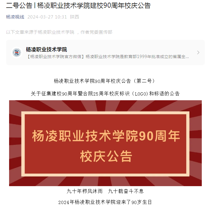 1. 立意鲜明,彰显主题。标识主题应体现90周年校庆寓意,彰显杨凌职院90年的办学历史,突出学校办学理念、办学定位等。