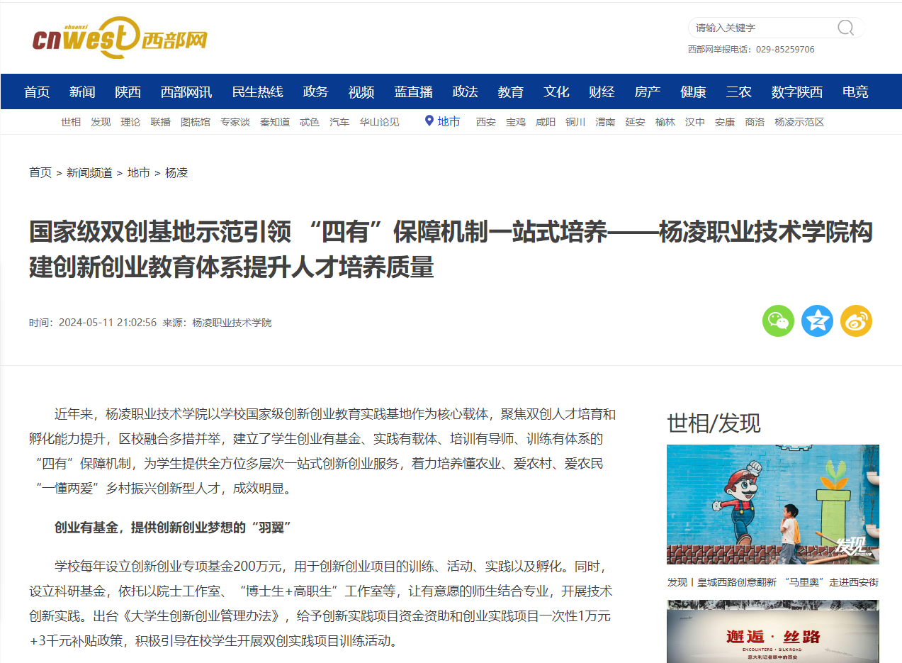 在“四有”保障机制的实施下,杨凌职院依托国家基地,师生累计参加双创活动1.2万余人次,开展“青年红色筑梦之旅”、“秦创原”科技创新成果展等系列活动300余场,培训创新创业师资1200余人次,省内外20余所高职院校来中心交流学习2156人次,申报创新创业教学改革校、省级课题20余项。参加大学生创新创业大赛,获国赛金奖3项、银奖4项、铜奖10项,省赛奖项221项。区校融合科创中心已经成为我校大学生创新创业教育、区校融合的重要载体和窗口。提升大学生实践能力。