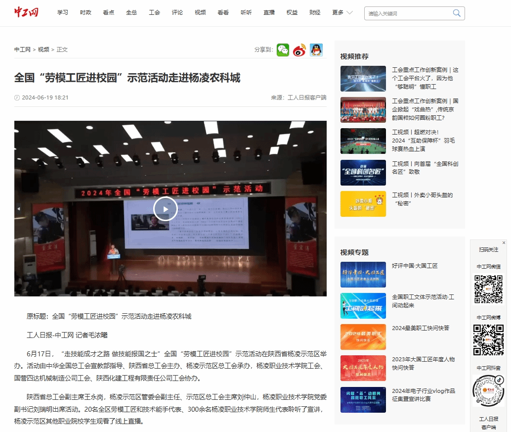 6月17日,“走技能成才之路 做技能报国之士”全国“劳模工匠进校园”示范活动在陕西省杨凌示范区举办。活动由中华全国总工会宣教部指导、陕西省总工会主办、杨凌示范区总工会承办,304am永利工会、国营四达机械制造公司工会、陕西化建工程有限责任公司工会协办。