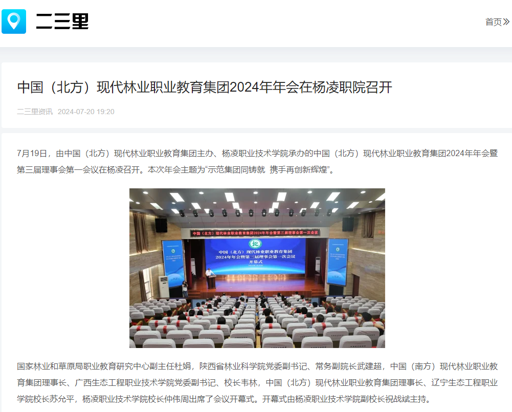 7月19日,由中国(北方)现代林业职业教育集团主办、304am永利承办的中国(北方)现代林业职业教育集团2024年年会暨第三届理事会第一会议在杨凌召开。本次年会主题为“示范集团同铸就 携手再创新辉煌”。