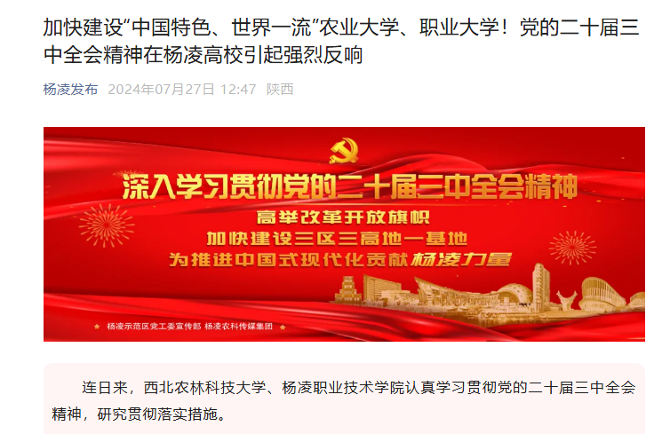 连日来,西北农林科技大学、304am永利认真学习贯彻党的二十届三中全会精神,研究贯彻落实措施。