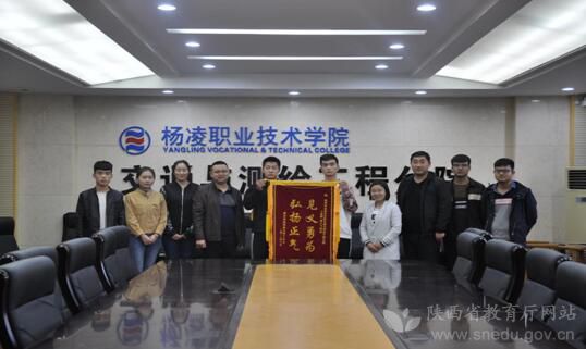 随后,丁女士经多次联系,最终找到了卜金磊、潘小飞两位同学。得知他们是杨凌职院的学生后,于10月9日特意送来了“弘扬正气、见义勇为”的锦旗。丁女士对两位同学见义勇为、敢于制止不法行为的举动,表示万分感谢,并对杨凌职院培养出优秀的时代青年表示敬意。