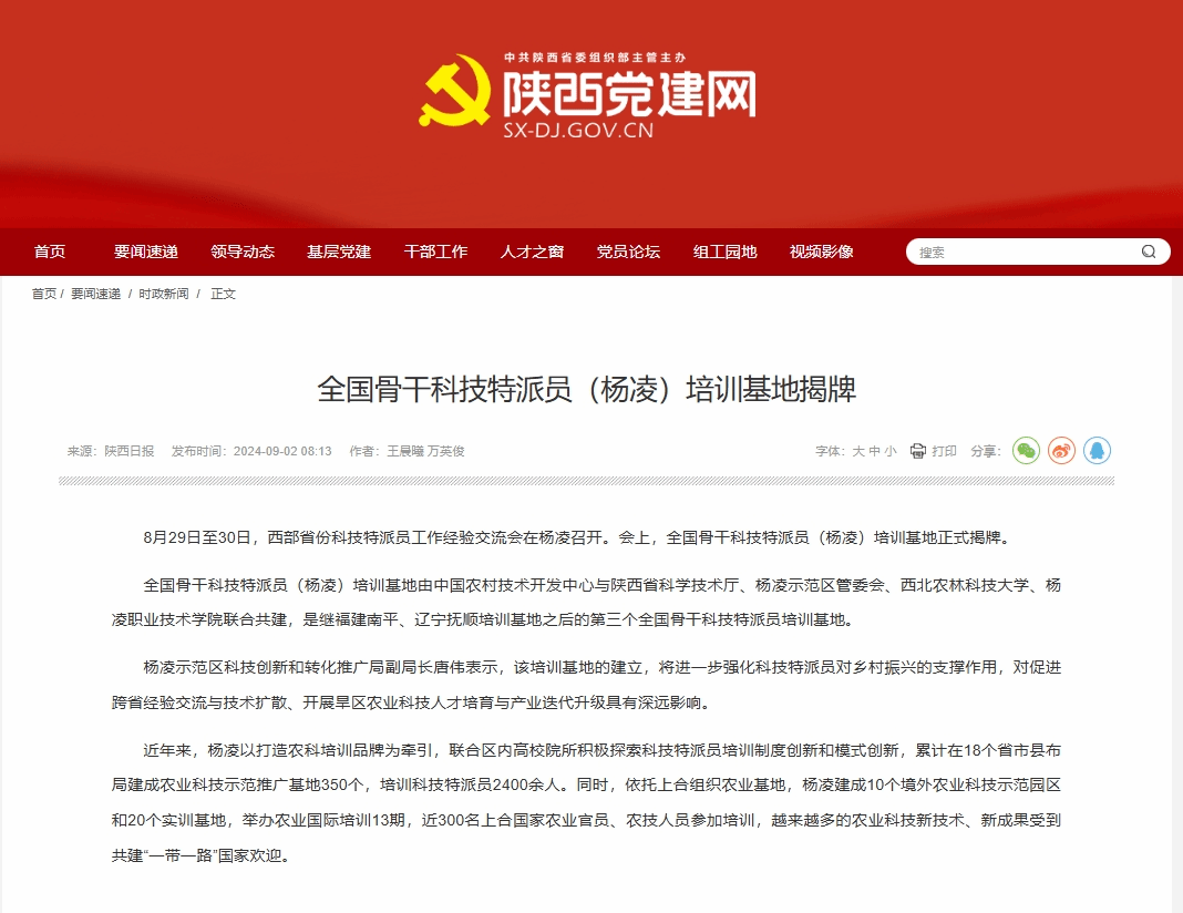 8月29日至30日,西部省份科技特派员工作经验交流会在杨凌召开。会上,全国骨干科技特派员(杨凌)培训基地正式揭牌。