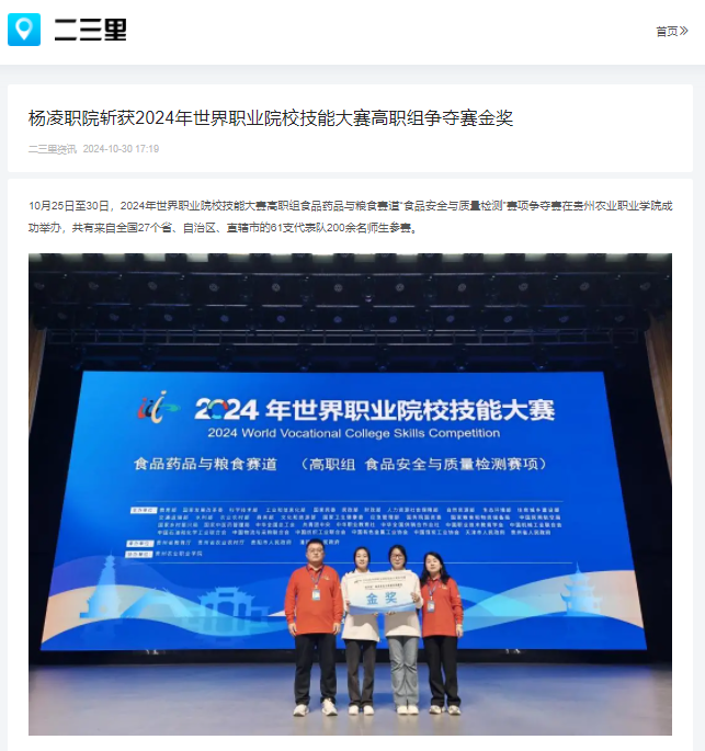10月25日至30日,2024年世界职业院校技能大赛高职组食品药品与粮食赛道“食品安全与质量检测”赛项争夺赛在贵州农业职业学院成功举办,共有来自全国27个省、自治区、直辖市的61支代表队200余名师生参赛。