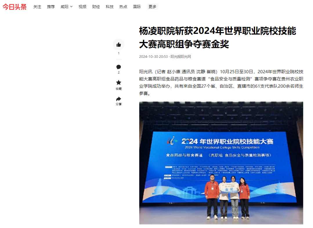 阳光讯(记者 赵小康 通讯员 沈静 崔晓)10月25日至30日,2024年世界职业院校技能大赛高职组食品药品与粮食赛道“食品安全与质量检测”赛项争夺赛在贵州农业职业学院成功举办,共有来自全国27个省、自治区、直辖市的61支代表队200余名师生参赛。