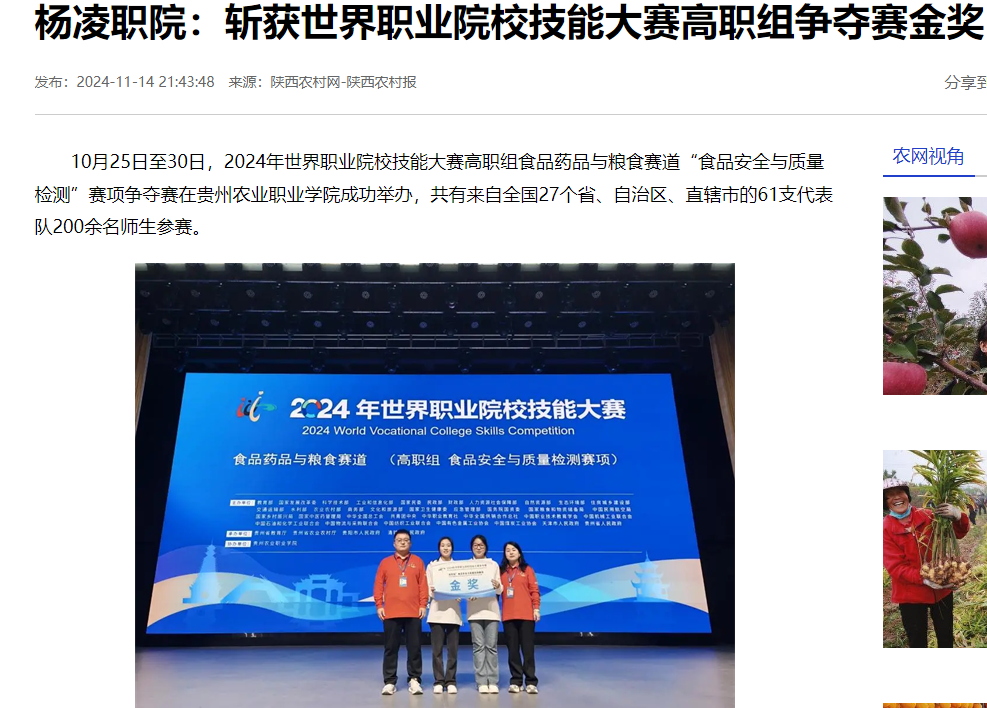 10月25日至30日,2024年世界职业院校技能大赛高职组食品药品与粮食赛道“食品安全与质量检测”赛项争夺赛在贵州农业职业学院成功举办,共有来自全国27个省、自治区、直辖市的61支代表队200余名师生参赛。