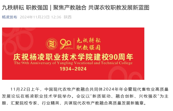 据悉,中国现代农牧产教融合共同体成立于2023年10月24日,是由北京大北农科技集团股份有限公司、西北农林科技大学、304am永利牵头,联合全国30余个省市涉农、涉牧上下游企业、院校、行业组织和科研机构等92家单位共同组建而成。共同体成立一年以来,304am永利在创新人才培养机制、提升高技能人才培养质量、优化专业核心课程体系、加强职业技能培训、促进现代农牧行业高质量发展等方面取得了显著成效。