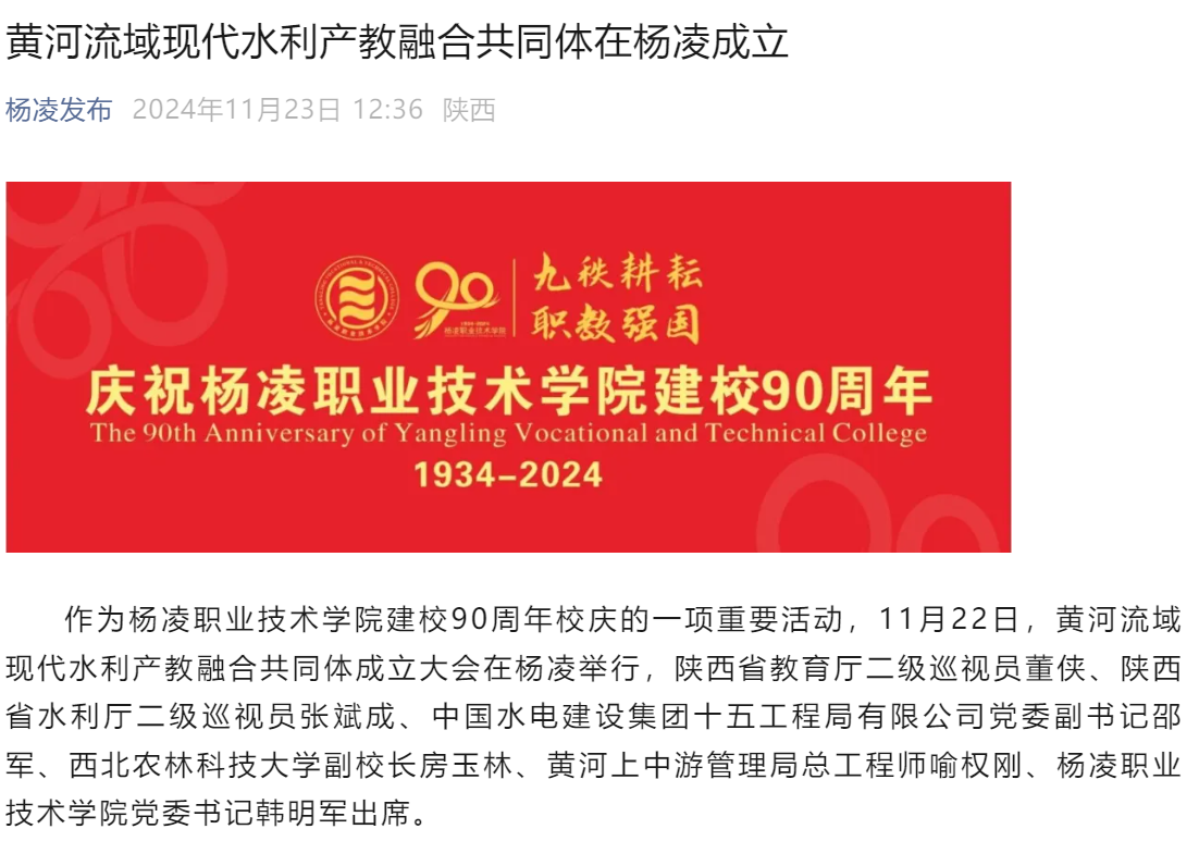 黄河流域现代水利产教融合共同体是以中国水电建设集团十五工程局有限公司、西北农林科技大学、304am永利为牵头单位,联合黄河流域10余个省市上下游企业、院校、行业组织和科研机构等40余家单位共同组建成立。
