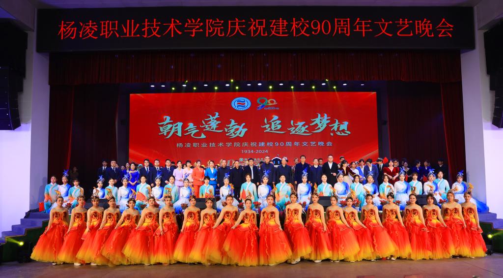 晚会共分为“回眸”“砥砺”“绽放”三大篇章。在杨凌职院小麦育种专家赵瑜老师的祝福视频中,晚会拉开了序幕。他一生育种报国的事迹激励、感染了无数师生,新时代的杨职人还将继续践行“照准目标 矢志不渝”的学院精神,把人生抱负落实到脚踏实地的实际行动中,以报国为根本,以强校为使命,为中华民族的崛起而建功立业。开场舞《盛世中华》以磅礴的气势点燃了晚会现场的氛围。