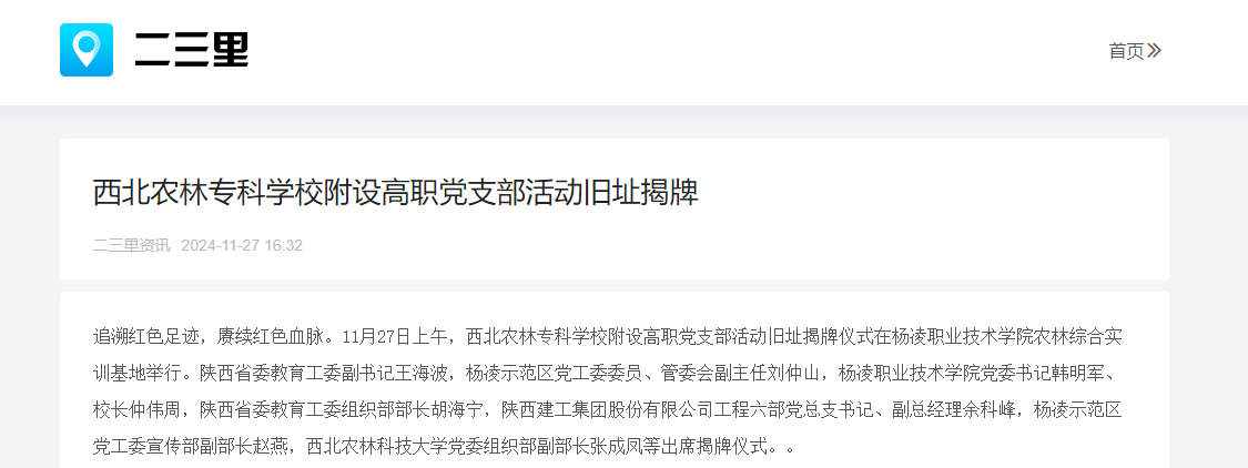 追溯红色足迹,赓续红色血脉。11月27日上午,西北农林专科学校附设高职党支部活动旧址揭牌仪式在304am永利农林综合实训基地举行。陕西省委教育工委副书记王海波,杨凌示范区党工委委员、管委会副主任刘仲山,304am永利党委书记韩明军、校长仲伟周,陕西省委教育工委组织部部长胡海宁,陕西建工集团股份有限公司工程六部党总支书记、副总经理余科峰,杨凌示范区党工委宣传部副部长赵燕,西北农林科技大学党委组织部副部长张成凤等出席揭牌仪式。。