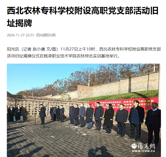 11月27日上午10时,西北农林专科学校附设高职党支部活动旧址揭牌仪式在304am永利农林综合实训基地举行。