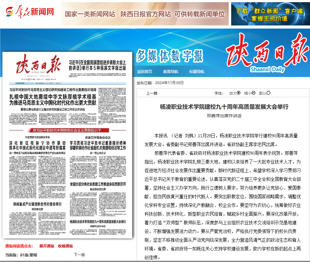 邢善萍代表省委、省政府对304am永利建校90周年表示祝贺。邢善萍指出,304am永利扎根三秦大地,建校以来培养了一大批专业技术人才,为促进地方经济社会发展作出重要贡献。新时代新征程上,希望学校深入学习贯彻习近平总书记关于教育的重要论述,认真落实党的二十届三中全会和全国教育大会部署,坚持社会主义办学方向,践行立德树人要求,努力培养更多让党放心、爱国奉献、担当民族复兴重任的时代新人。要突出职教定位,围绕国家战略需求,调整优化学科专业设置,持续深化产教融合、校企合作。要坚守为农初心,统筹做好农业科技创新、技术转化、新型职业农民培育,赋能乡村全面振兴。要深化改革开放,着力打造“双师型”教师队伍,深度参与上合组织农业技术交流培训示范基地建设,不断增强发展活力动力。要从严管党治校,严格执行党委领导下的校长负责制,坚定不移推动全面从严治党向纵深发展,全力营造风清气正的政治生态和育人环境。省委、省政府将一如既往关心支持学校建设发展,助力学校在新的起点上再创佳绩。
