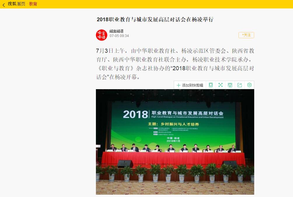 李九红在主旨发言中指出,杨凌是华夏农耕文明的重要发祥地,也是我国首个国家级农业高新技术产业示范区和全国唯一的农业自贸试验片区。杨凌示范区成立以来,始终把职业教育作为科技示范推广的重要支撑,依托区内高校和多所职业学校,先后建成了全国首个青年职业农民培训基地、职业农民创业创新园,成立了农民技术职称和技能培训学校,并走出国门举办职业农民培训班。此次全国职业教育领域众多重量级专家齐聚杨凌,分享职教经验,发表真知灼见,给杨凌带来了许多先进的人才培养思路和方法,杨凌示范区将以本次大会为契机,进一步强化区校融合,大力开展新型职业农民培养,带动扩大就业和脱贫攻坚,为我国农业农村现代化和乡村振兴作出新的更大的贡献。