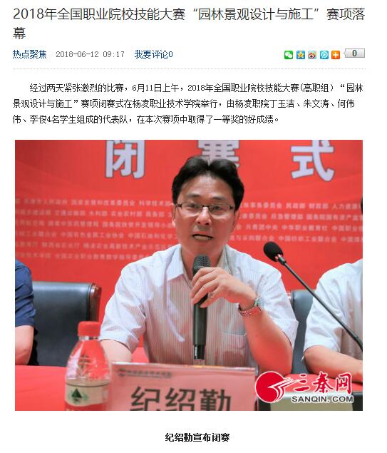 经过两天紧张激烈的比赛,6月11日上午,2018年全国职业院校技能大赛(高职组)“园林景观设计与施工”赛项闭赛式在304am永利举行,由杨凌职院丁玉洁、朱文涛、何伟伟、李俊4名学生组成的代表队,在本次赛项中取得了一等奖的好成绩。