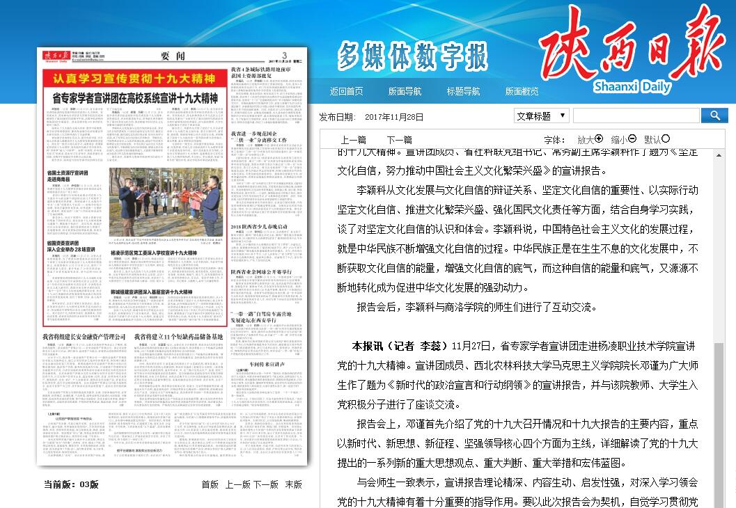 【陕西日报】省专家学者宣讲团在高校系统宣讲党的十九大精神