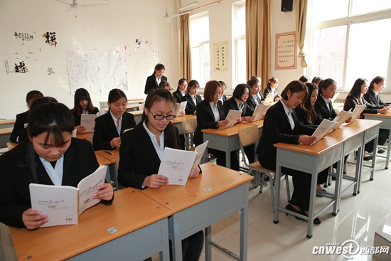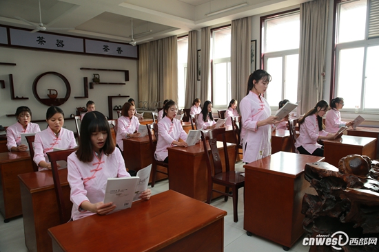 杨凌职院茶艺专业学生正在诵读经典名篇《长恨歌》。