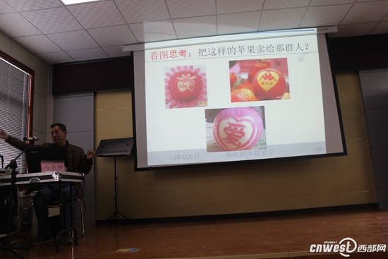 随后,杨凌职院生物工程分院教授马志峰为旬邑县职业农民培育学院的学员进行了以“苹果生产经营的基本思路”为主要内容的培训讲座。
