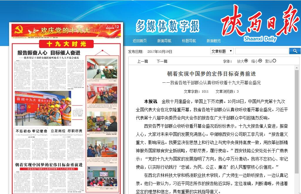 在凤翔县城关镇六营村,大学生村官赵瑜说:“报告更加坚定了我扎根基层、为民服务的决心。我要发挥自身优势,为村上早日致富奔小康贡献力量。”凤翔县委书记王建民说:“我们要认真学习党的十九大精神,激发活力、鼓足干劲,以更加饱满的工作热情和更加奋发有为的工作态度,推动凤翔实现又好又快发展。” (记者 李岚 王帅 肖杨 王雄 郑栋 陈圣强)