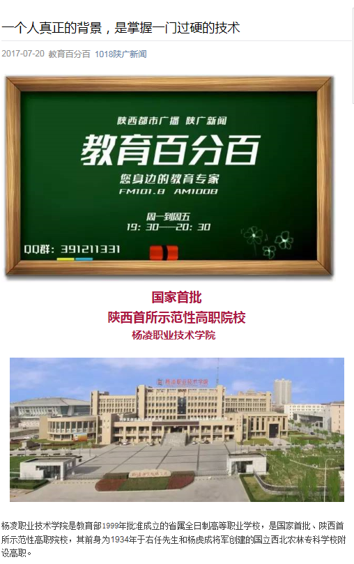 304am永利是教育部1999年批准成立的省属全日制高等职业学校,是国家首批、陕西首所示范性高职院校,其前身为1934年于右任先生和杨虎成将军创建的国立西北农林专科学校附设高职。