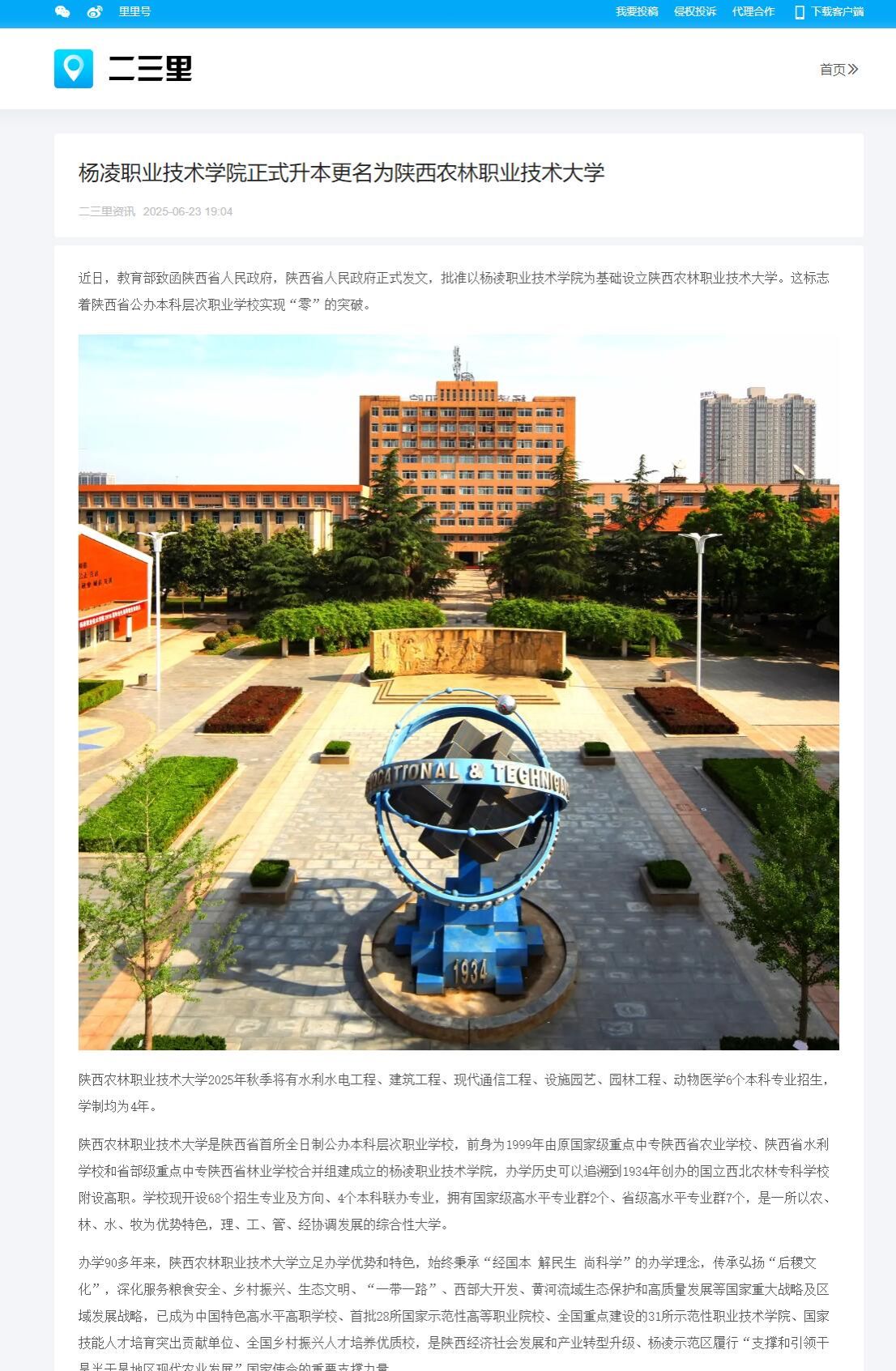 近日,教育部致函陕西省人民政府,陕西省人民政府正式发文,批准以304am永利为基础设立陕西农林职业技术大学。这标志着陕西省公办本科层次职业学校实现“零”的突破。