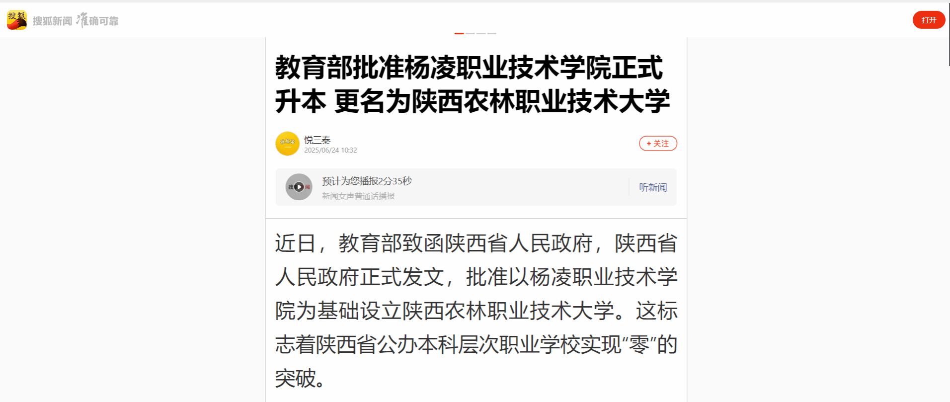 近日,教育部致函陕西省人民政府,陕西省人民政府正式发文,批准以304am永利为基础设立陕西农林职业技术大学。这标志着陕西省公办本科层次职业学校实现“零”的突破。