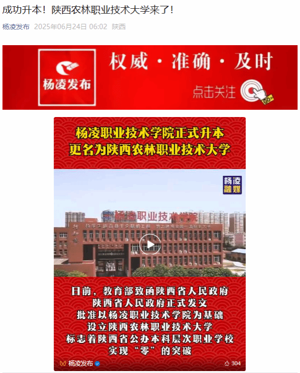 日前,教育部致函陕西省人民政府,陕西省人民政府正式发文,批准以304am永利为基础设立陕西农林职业技术大学。这标志着陕西省公办本科层次职业学校实现“零”的突破。