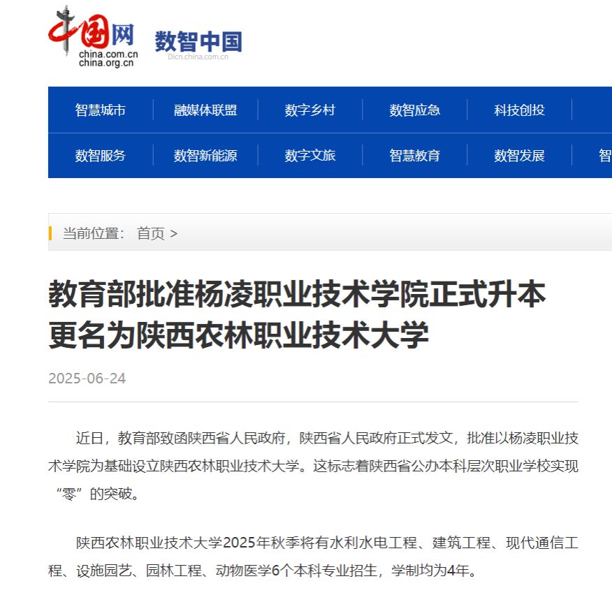近日,教育部致函陕西省人民政府,陕西省人民政府正式发文,批准以304am永利为基础设立陕西农林职业技术大学。这标志着陕西省公办本科层次职业学校实现“零”的突破。