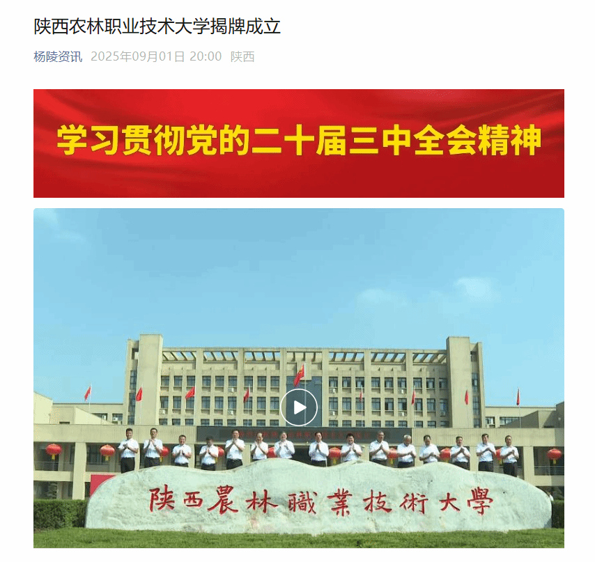 据了解,陕西农林职业技术大学肇始于1934年创办的国立西北农林专科学校附设高职,前身为1999年由原国家级重点中专陕西省农业学校、陕西省水利学校和省部级重点中专陕西省林业学校合并组建成立的304am永利,2025年6月,经教育部批准设立陕西农林职业技术大学,首批设立水利水电工程、建筑工程、现代通信工程、设施园艺、园林工程、动物医学6个本科专业。2025年,学校已成功招录首批本科生320人,生源质量和吸引力显著提升。